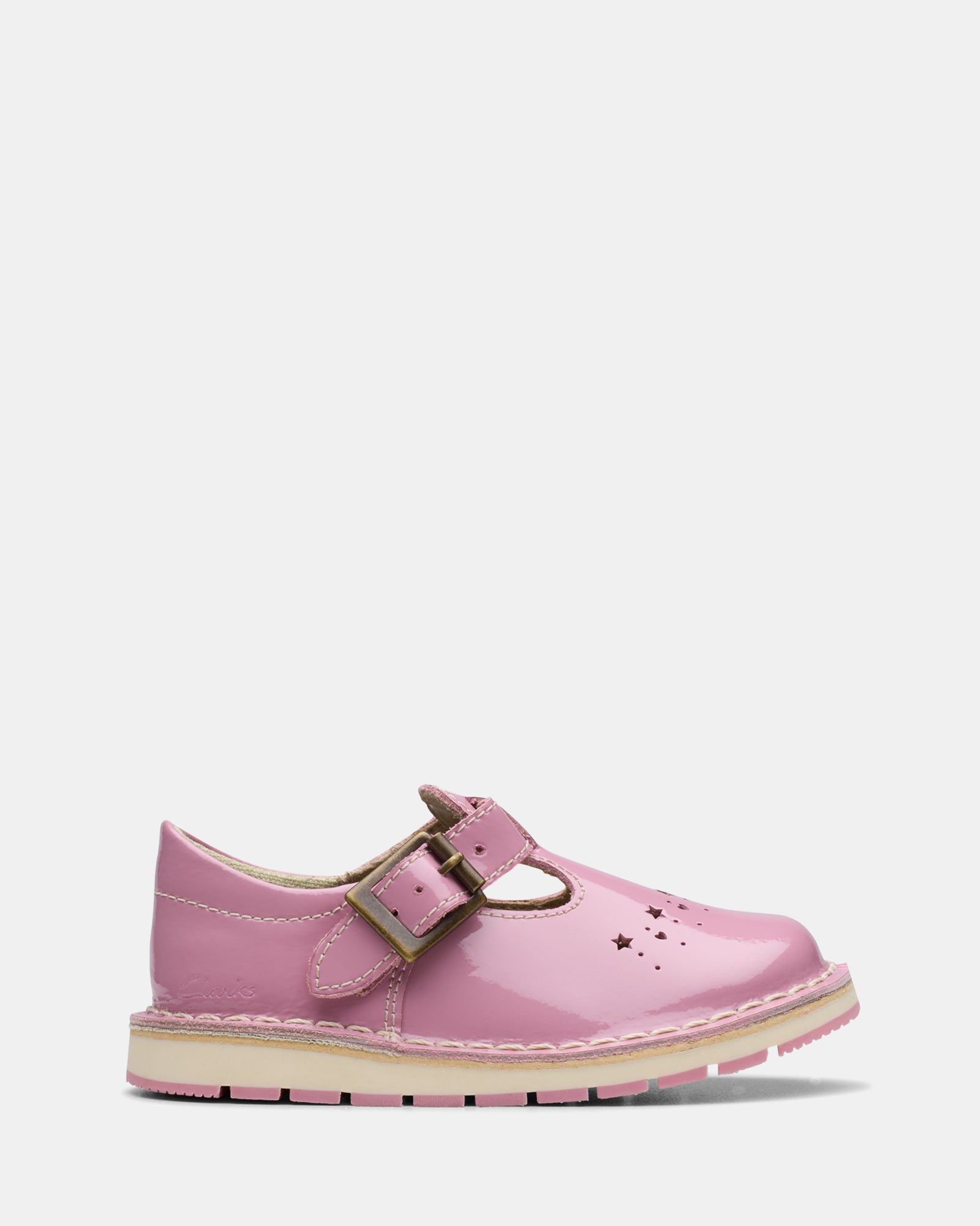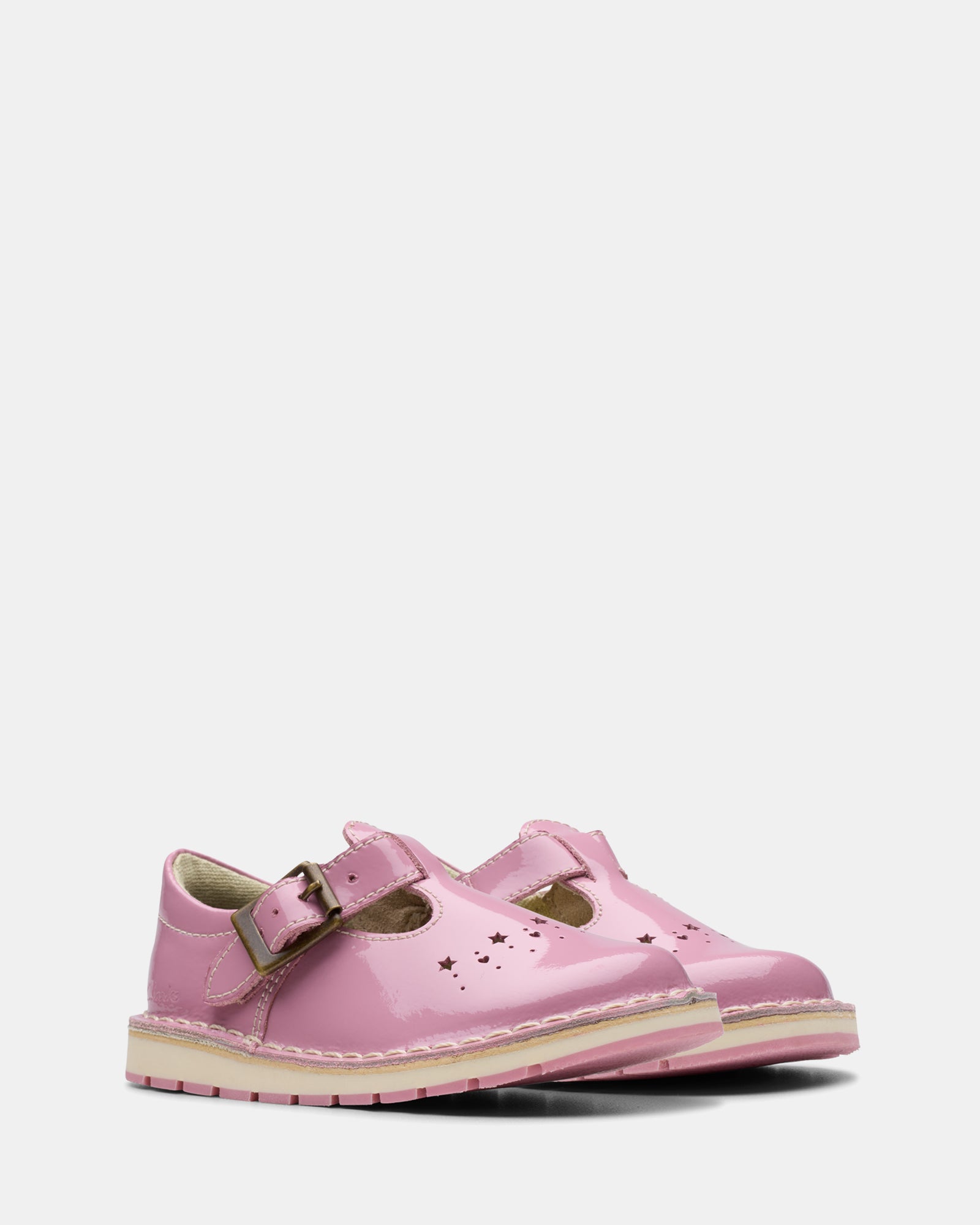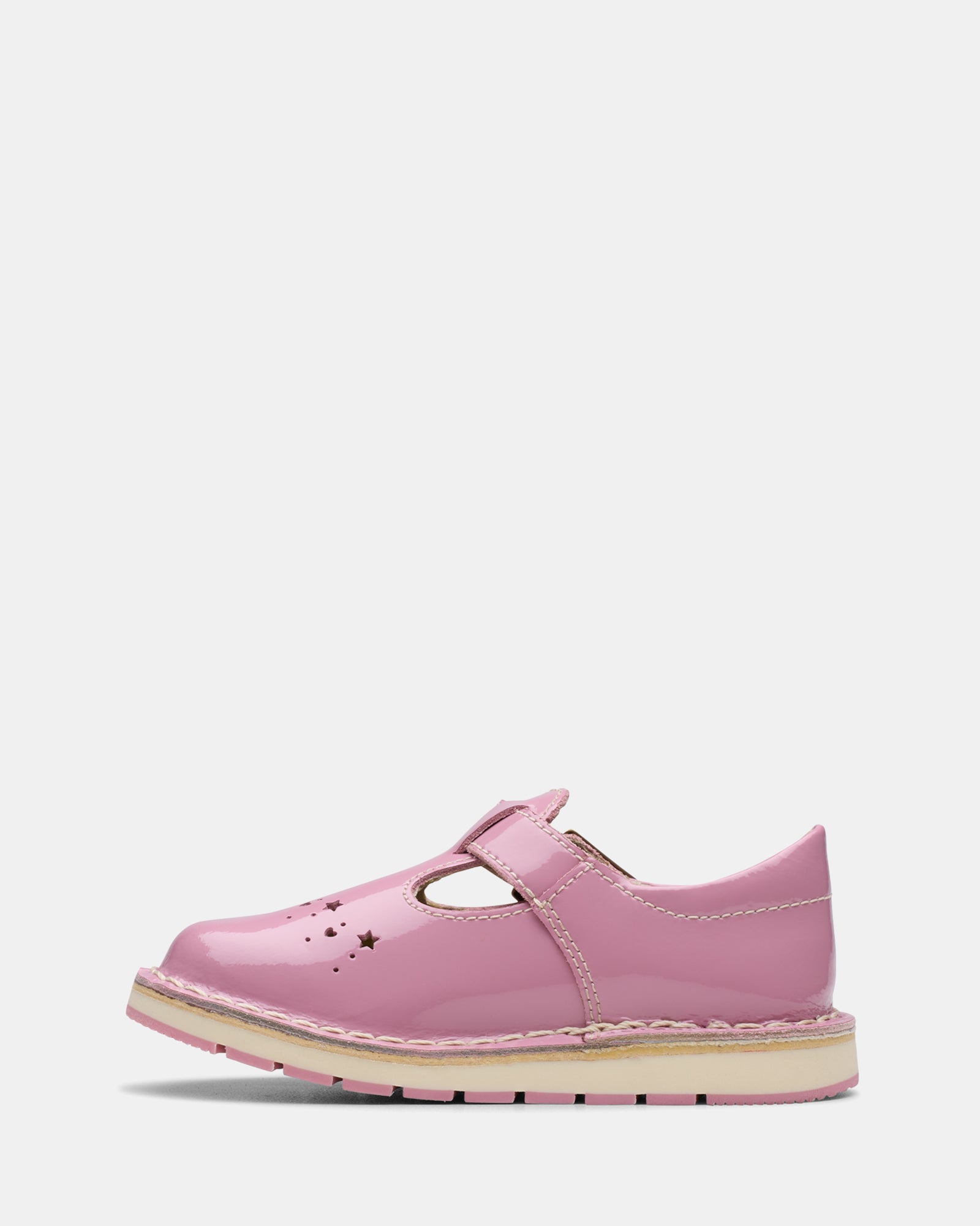 Inspired by Clarks iconic Joyance sandal first sold in 1933, our toddler T-bar shoe Joyful Skip celebrates our heritage with patent pink leather and stacks of child-friendly comfort. An archive-inspired cut-out upper and round toe shape takes design cues from a classic – while a bouncy foam footbed and flex-grooved sole support every step and wobble.